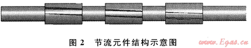 基于井下安全的考慮,這里選擇被廣泛應(yīng)用于鉆井現(xiàn)場的井下穩(wěn)定器作為節(jié)流元件的參考結(jié)構(gòu)。在產(chǎn)生需要壓差的前提下,為了保證鉆井液(包括巖屑)能夠沿流道順利通過節(jié)流元件而不發(fā)生阻塞,這里使用多級節(jié)流的方法來達到預(yù)期的節(jié)流效果,如圖2所示。