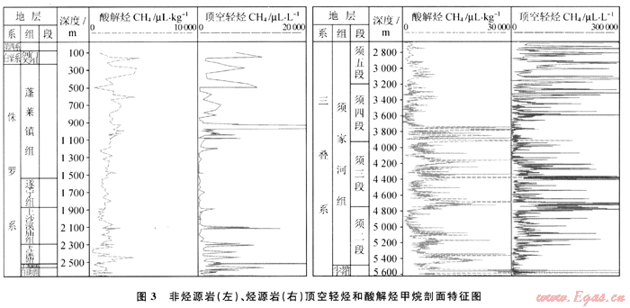 筆者依據(jù)井中化探酸解烴和頂空輕烴不同指標特征,以四川盆地某構(gòu)造上X1井為例,探討陸相烴源巖的層位預(yù)測、類型劃分和成熟度評價方法。