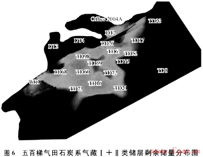 1) 精細氣藏描述技術。形成地震儲層預測技術、裂縫精細表征技術、氣藏精細地質建模技術、氣藏開發(fā)動態(tài)監(jiān)測技術、精細氣藏數(shù)值模擬技術、剩余儲量描述技術、治水挖潛增效開發(fā)技術等7個精細氣藏描述主體技術系列。老氣田精細氣藏描述成為重新認識和評價老氣田,弄清剩余儲量分布,明確挖潛目標,制訂合理開發(fā)調整方案的重要手段。通過對五百梯氣田石炭系(圖6)等11個氣藏進行精細描述,核增地質儲量317.16×108m3,增加可采儲量173.41×108m3,延長穩(wěn)產(chǎn)年限2~5a,提高采收率5.8%~12.5%,效果顯著。