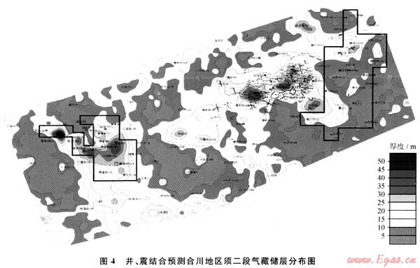 2) 碎屑巖氣藏勘探技術。立足前陸盆地發(fā)展模式,認識了盆地結構控制須家河組氣藏類型,前陸隆起帶和斜坡帶具有形成大中型氣藏的有利條件,有利沉積相、繼承性古構造、高豐度烴源區(qū)和裂縫發(fā)育帶是氣藏富集帶;建立了二維地震網(wǎng)格法采集模式,形成和發(fā)展了大面積砂巖儲層預測技術和識別致密砂巖中高孔儲層的地震綜合預測技術;建立了致密砂巖儲層下限綜合評價技術,創(chuàng)新集成的低電阻氣層測井綜合識別技術,有效解決了大川中“砂中找好砂”的儲層地震預測難題(圖2)。通過這些技術的全面應用和實踐,已初步形成了大川中須家河組氣藏三級儲量萬億立方米規(guī)模儲量區(qū)。