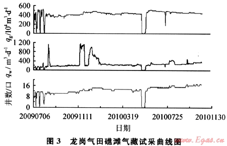 針對龍崗地區(qū)礁灘氣藏高溫、高壓、高含硫特點開展的開發(fā)技術攻關取得重要進展,有力支撐了龍崗氣田試采工程建設和投產(chǎn)。開發(fā)地質綜合評價研究深化了對龍崗氣田礁灘氣藏儲層非均質性、氣井產(chǎn)能、氣田水分布特征的認識,為試采區(qū)合理開采奠定了基礎;形成了分層酸化合層開采的完井管柱優(yōu)化技術和150℃高溫凝膠酸和轉向酸酸液體系,使超深、高溫、高壓、高含硫氣井完井與儲層改造配套技術不斷完善,支撐了龍崗氣田試采區(qū)單井日產(chǎn)量最高達80×104m3氣井的產(chǎn)能建設;建立了井筒安全屏障及實際工況油套管柱安全分析技術,確保了投產(chǎn)的高含硫氣井安全可靠生產(chǎn);形成和完善了酸性天然氣腐蝕與防腐配套技術,解決了高含硫氣藏井下與地面系統(tǒng)整體防腐問題;高含硫天然氣凈化技術的配套和完善,支持建成了國內單系列最大規(guī)模的脫硫、硫磺回收和尾氣處理裝置,為龍崗氣田試采工程一次投產(chǎn)成功提供了有力保障。龍崗氣田礁灘氣藏投產(chǎn)氣井井均日產(chǎn)氣量達到25×104m3,成為四川盆地有史以來單井日產(chǎn)量最高的氣田(圖3)。