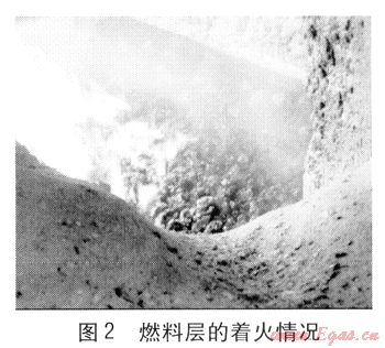 燃料層表層秸稈壓塊的快速著火形成比較長(zhǎng)的揮發(fā)分火焰,見(jiàn)圖3。