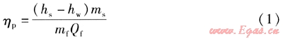 采用純粹燃煤方法,通過(guò)測(cè)試得到:hs=2770kJ/kg,hw=84kJ/kg,Qf=22583kJ/kg,mf=180.31kg,ms=1000kg,將測(cè)試參數(shù)代入式(1),計(jì)算得出ηp=65.96%。