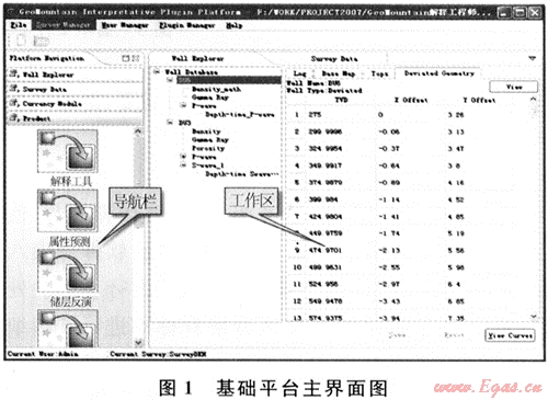 當(dāng)前,地震解釋軟件種類(lèi)較多,國(guó)外的有大型地震綜合解釋LandMark軟件系統(tǒng)、微機(jī)一體化油藏描述的Discovery軟件系統(tǒng),地震微機(jī)解釋軟件包SMT,斯倫貝謝公司的勘探開(kāi)發(fā)一體化軟件包Geoframe系統(tǒng),OpendTect軟件系統(tǒng)。國(guó)內(nèi)有處理解釋一體化的GeoEast軟件系統(tǒng)[1],雙狐微機(jī)解釋系統(tǒng)等。LandMark軟件主要有OpenWorks軟件平臺(tái)和各個(gè)應(yīng)用程序組成,應(yīng)用程序都是OpenWorks的插件,均運(yùn)行于OpenWorks環(huán)境下,受它管理,遵循其設(shè)置的規(guī)則和標(biāo)準(zhǔn),所有應(yīng)用程序產(chǎn)生的各類(lèi)數(shù)據(jù)包括地質(zhì)、地震、測(cè)井、人文4大類(lèi)數(shù)據(jù),均存儲(chǔ)于OpenWorks數(shù)據(jù)庫(kù)中,形成了一個(gè)統(tǒng)一的數(shù)據(jù)體。盡管如此,在插件的管理方面,開(kāi)發(fā)人員仍不能方便地進(jìn)行插件安裝和卸載。而OpendTect軟件具有很好的插件機(jī)制,主要由基礎(chǔ)環(huán)境以及在此基礎(chǔ)上運(yùn)用高級(jí)插件技術(shù)(Plugin)開(kāi)發(fā)的功能模塊組成,但在數(shù)據(jù)平臺(tái)方面又有所欠缺。.結(jié)合四川山地物探的研發(fā)模式,探索一套基礎(chǔ)平臺(tái)加功能插件的軟件架構(gòu)設(shè)計(jì),使該解釋平臺(tái)(即GeoMountoin軟件系統(tǒng))較好地解決軟件開(kāi)發(fā)與集成,使之具有很好的擴(kuò)展性。