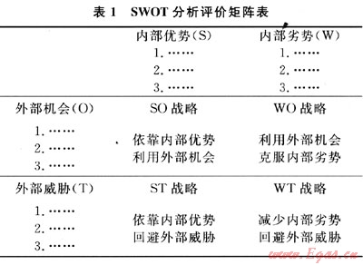 所謂SWOT分析,是指通過綜合考慮企業(yè)內(nèi)部條件和外部環(huán)境的各種岡素(包括內(nèi)部的優(yōu)勢和劣勢以及外部的機會和挑戰(zhàn)),對企業(yè)進行系統(tǒng)評價,從而選擇最佳經(jīng)營戰(zhàn)略的方法。企業(yè)通過識別自身存在的優(yōu)劣勢及環(huán)境帶來的機會和威脅來做出迅速反應(yīng)和果斷決策,從而將調(diào)查得出的各種因素根據(jù)輕重緩急或影響程度等排序方式,構(gòu)造SWOT矩陣(表1)。