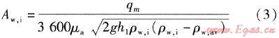 冬季工況下的計(jì)算參數(shù)為:tn=18℃、ti=12℃、h=14m,由式(1)、(2)計(jì)算得,tt=32.4℃、qm=2619.8t/h。進(jìn)排風(fēng)面積采用熱壓法計(jì)算[2],下百葉窗孔面積Aw,i的計(jì)算式為: