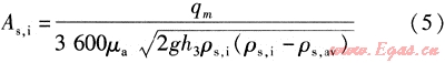 夏季工況下的計(jì)算參數(shù)為:tn=32℃、ti=28℃、h=16m,由式(1)、(2)計(jì)算得,tt=48.2℃、qm=3207.9t/h。熱板坯車(chē)間進(jìn)風(fēng)口(電動(dòng)啟閉下百葉窗、防風(fēng)沙外墻百葉窗)面積As,i的計(jì)算式為: