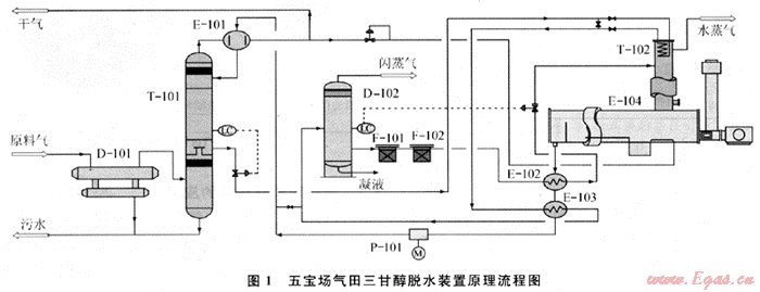 五寶場氣田三甘醇脫水裝置在設(shè)計(jì)中采用了先進(jìn)的齒輪泵、高效的波紋板式換熱器,簡化了脫水工藝流程,降低了脫水裝置的能耗,減少了脫水裝置投資和運(yùn)行成本。