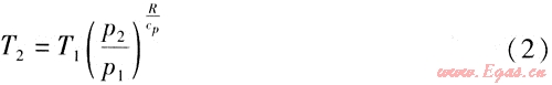等熵膨脹過程中△S1-2=0,則膨脹后的氣體溫度為: