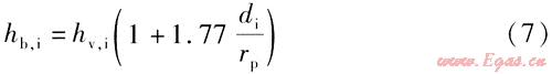 流體在彎管內(nèi)流動時,由于受離心力的作用,增大了流體的湍動程度,使其表面?zhèn)鳠嵯禂?shù)比直管的表面?zhèn)鳠嵯禂?shù)大,此時可用式(7)計算表面?zhèn)鳠嵯禂?shù):