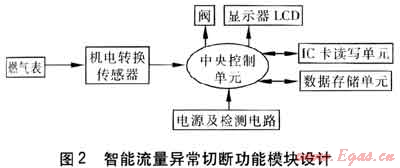 中央控制單元是安全智能燃?xì)獗淼暮诵?。通過IC卡讀寫單元將民用燃?xì)猱惓A髁繀?shù)傳入燃?xì)獗淼闹醒肟刂茊卧?,并保存到?shù)據(jù)存儲單元中,作為異常流量的判斷依據(jù)。當(dāng)前的瞬時流量信號從燃?xì)獗硗ㄟ^機(jī)電轉(zhuǎn)換傳感器讀入到中央控制單元后,由中央控制單元計(jì)算出當(dāng)前燃?xì)獗淼乃矔r流量值,并與異常流量范圍進(jìn)行比較。當(dāng)確認(rèn)流量異常時,中央控制單元發(fā)出關(guān)閥操作信號,閥門關(guān)閉,顯示器顯示異常提示,并形成記錄,通過TC卡或無線形式反饋到管理系統(tǒng),供故障分析。