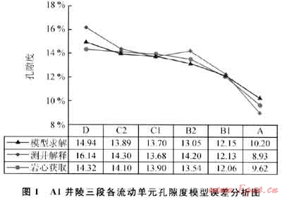 崖城13-1氣田開發(fā)時期較長,對于孔隙度模型的研究一直未停止。A1、A2、A8井在儲層段采用低侵取心技術(shù)進行全井段取心,收獲率高,巖心具有代表性。因此,以生產(chǎn)井巖心、三孔隙度測井曲線為基礎(chǔ),分流動單元建立孔隙度計算模型。