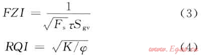 定義流動單元指標FZI和儲層質(zhì)量系數(shù)RQI為: