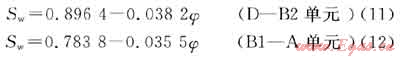 3) 利用測井計算的孔隙度,根據(jù)低侵巖心分析的含水飽和度和孔隙度對數(shù)回歸公式計算,其公式為:
