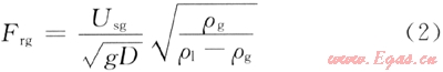 Froude數(shù)(Frg)為表征氣體慣性力與重力之比的無量綱相似準(zhǔn)則數(shù)[5],反映了氣體的表觀速度、壓力等諸多因素的內(nèi)在聯(lián)系,具體表達(dá)式如下: