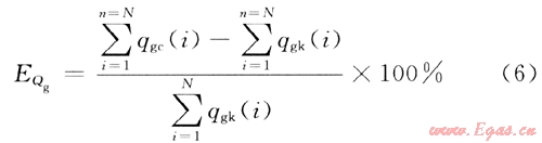 式中qgc(i)為第i個(gè)小時(shí)的測試樣機(jī)氣相測量流量,m3;qgk(i)為第i個(gè)小時(shí)的孔板氣相測量流量,m3;N為比對(duì)總的小時(shí)數(shù)。