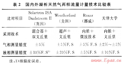 表2為英國Solartron ISA公司、美國Weatherford公司與挪威Roxar公司濕氣流量計(jì)產(chǎn)品技術(shù)指標(biāo)與天津大學(xué)濕氣測量技術(shù)水平的比較。