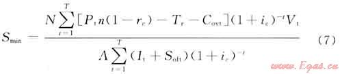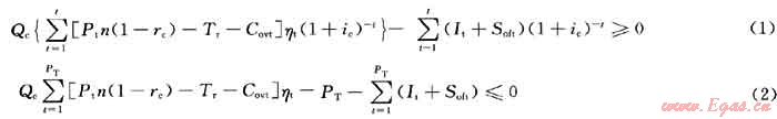 單井初期產(chǎn)量界限指在一定的開(kāi)發(fā)技術(shù)和財(cái)稅體制下,氣井所獲得的收益能彌補(bǔ)全部投資、采氣操作費(fèi)并獲得最低收益率時(shí)初期所應(yīng)達(dá)到的最低產(chǎn)量,當(dāng)氣井初期產(chǎn)量大于這一值時(shí),則認(rèn)為經(jīng)濟(jì)上是可行的。計(jì)算方法為同時(shí)滿(mǎn)足公式(1)和(2)中的Qc的值。即