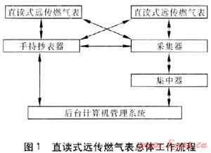直讀式遠傳燃氣表控制及管理系統(tǒng)主要由直讀式遠傳燃氣表、手持抄表器、采集器、集中器、后臺計算機管理系統(tǒng)5部分組成。燃氣公司可以根據(jù)自身實際情況,自由靈活地組合抄表方案:點對點抄表或GPRS遠程抄表。