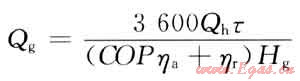 8) 一個采暖季工質加壓用的天然氣發(fā)動機所需燃料費用:Zr=QgCg