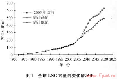 由于進(jìn)口LNG有助于能源消費(fèi)國(guó)實(shí)現(xiàn)能源供應(yīng)的多元化,保障能源安全;而出口LNG有助于天然氣資源國(guó)有效開(kāi)發(fā)生產(chǎn)天然氣,增加收入,促進(jìn)國(guó)民經(jīng)濟(jì)的發(fā)展。因此LNG國(guó)際貿(mào)易已成為全球能源市場(chǎng)的一個(gè)熱點(diǎn),其貿(mào)易量也連年高速增長(zhǎng),LNG已成為全球增長(zhǎng)最迅猛的能源產(chǎn)業(yè)之一。