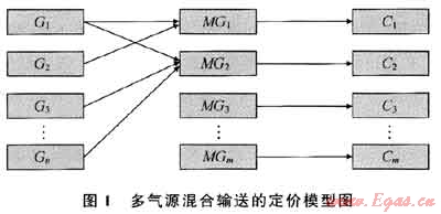 中國(guó)天然氣市場(chǎng)已進(jìn)入高速發(fā)展階段,自2000年以來(lái),國(guó)內(nèi)天然氣產(chǎn)量年均增長(zhǎng)高達(dá)13.7%[1]。據(jù)中國(guó)石油和化學(xué)工業(yè)協(xié)會(huì)統(tǒng)計(jì),中國(guó)天然氣消費(fèi)量2009年消費(fèi)量為874.5×108m3,同比增長(zhǎng)11.5%,2009年產(chǎn)量為830×108m3,增長(zhǎng)7.7%,2010年1-7月國(guó)內(nèi)天然氣產(chǎn)量同比增長(zhǎng)9.8%,達(dá)532×108m3(國(guó)家統(tǒng)計(jì)局?jǐn)?shù)據(jù))。國(guó)內(nèi)能源結(jié)構(gòu)中,目前天然氣比例不到4%,遠(yuǎn)低于世界24.1%的平均水平,按國(guó)家能源局的規(guī)劃,未來(lái)的20a里,天然氣在能源結(jié)構(gòu)中的比重將提高到8.0%以上[2],天然氣需求將達(dá)到4000×108m3,多種途徑不同氣源的天然氣將大規(guī)模進(jìn)入中國(guó)。市場(chǎng)建設(shè)方面,以西氣東輸和川氣東送等主干網(wǎng)為基礎(chǔ),各支線為輔,國(guó)內(nèi)天然氣逐步形成了東北、環(huán)渤海、華東、中南、華南、西南、西部等區(qū)域市場(chǎng)[3]。因此,多氣源供應(yīng)將成為天然氣市場(chǎng)的常態(tài),多氣源混合輸送的定價(jià)問題將成為天然氣市場(chǎng)的焦點(diǎn)問題。