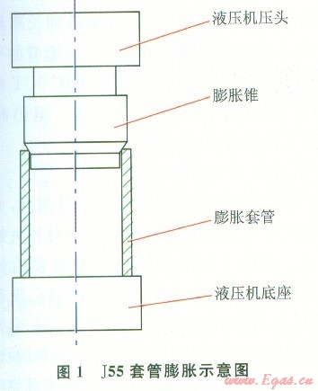 套管在膨脹后,徑向增大幅度可以叫做膨脹的變形程度,也叫做膨脹率。本試驗中,l號、2號J55套管的膨脹率分別為9.9,8%、9.37%。
