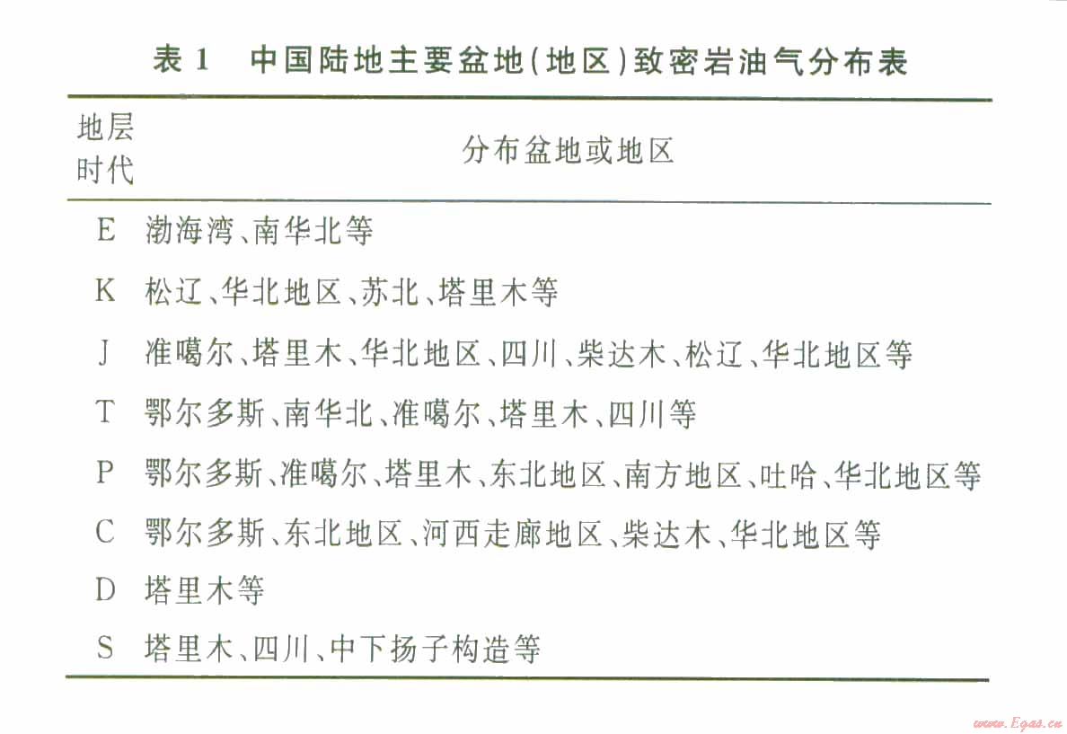 1)依據(jù)目前的勘探成果,研究認(rèn)為,中國(guó)致密巖油氣具多層位富集的特點(diǎn)——志留系、泥盆系、石炭系、二疊系、三疊系、侏羅系—白堊系、古近系等均有分布(表1)。