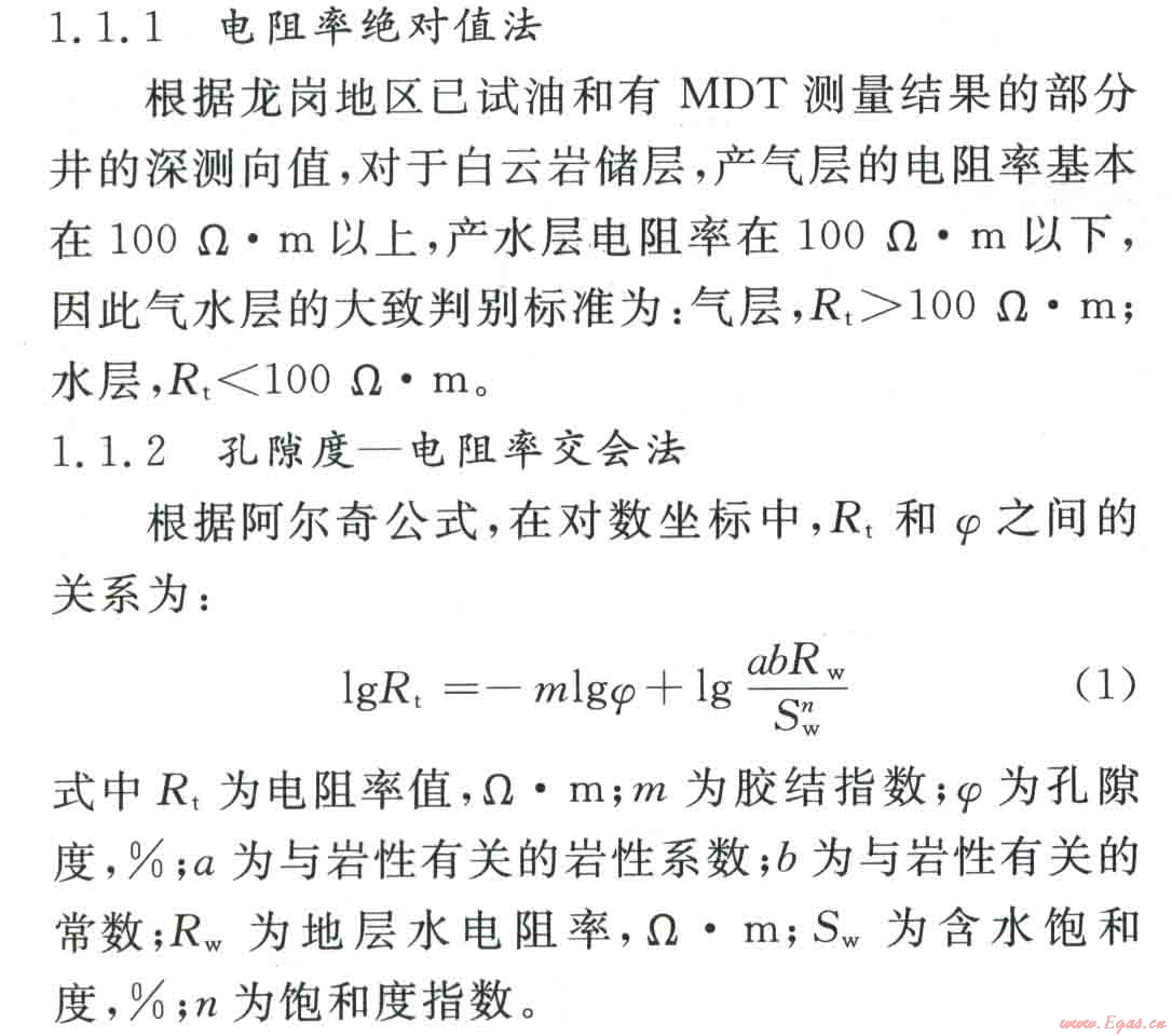 氣層:交會(huì)點(diǎn)子多數(shù)落在含水飽和度l0%~40%之間,少數(shù)點(diǎn)子分布在40%~60%之間。 氣水層:交會(huì)點(diǎn)子多數(shù)落在含水飽和度40%~60%之間。