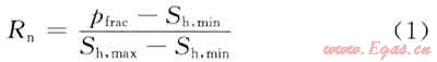 式中Rn為擬凈壓力系數(shù);pfrac為凈壓力,MPa Sh,max為水平最大主應力,MPa;Sh,min為水平最小主應力,MPa。