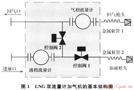 LNG加氣機(jī)通過(guò)加液通路將LNG加注到汽車儲(chǔ)氣罐中,同時(shí)完成對(duì)加注量的計(jì)量。流量計(jì)是LNG加氣機(jī)的核心計(jì)量部件,LNG的超低溫特性決定了其對(duì)流量計(jì)的選擇較為苛刻。目前LNG加氣機(jī)采用基于科里奧利力原理的質(zhì)量流量計(jì),由液相流量計(jì)負(fù)責(zé)計(jì)量加氣站加注到汽車儲(chǔ)氣罐中的LNG質(zhì)量。