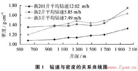 1.1 鉆井液密度對鉆速的影響