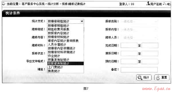 對(duì)報(bào)修記錄、咨詢記錄、投訴記錄、維修記錄、回訪記錄的統(tǒng)計(jì)。