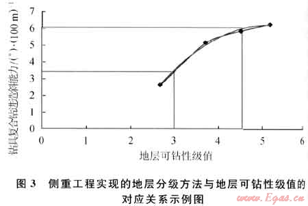 研究分析地層物性條件對水平井井眼軌跡的影響規(guī)律,至少需要解決2個問題:①地層物性條件的標(biāo)識問題,即如何將地層的各種物性特征按照統(tǒng)一標(biāo)準(zhǔn)歸類、分級;②如何建立地層物性條件與井眼姿態(tài)參數(shù)(井斜角、方位角)的對應(yīng)關(guān)系。其中,地層物性條件的標(biāo)識問題可以從眾多的地層可鉆性分級方法中優(yōu)選;而對于第二個問題則可以利用統(tǒng)計分析的方法建立某一區(qū)塊特定鉆具組合在復(fù)合鉆進(jìn)方式下的鉆進(jìn)特性與地層物性的統(tǒng)計關(guān)系予以解決。