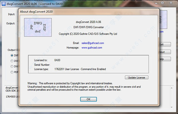 4、至此,dwgConvert(AutoCAD版本轉(zhuǎn)換器) 2020 A.06破解版成功注冊(cè)破解,運(yùn)行打開(kāi)軟件,用戶(hù)可以無(wú)限制免費(fèi)使用啦