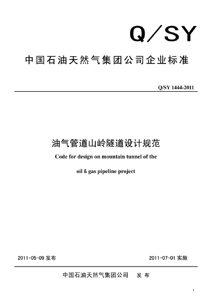 《油氣管道山嶺隧道設(shè)計規(guī)范》Q/SY 1444-2011本標準給出了油氣管道山嶺隧道的分級與分類、 隧道調(diào)查和勘察、 總體設(shè)計、 荷載、 洞口與洞門、襯砌結(jié)構(gòu)設(shè)計、 結(jié)構(gòu)計算、 抗震設(shè)計、 防水與排水、 輔助工程措施和管道及配套設(shè)計要求, 適用于以礦山法施工的新建油氣管道山嶺隧道工程。 不適用于油氣管道水域隧道工程。