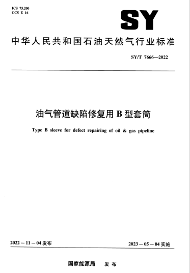 油氣管道缺陷修復(fù)用B型套筒SY/T 7666-2022 :本文件規(guī)定了 L485/X70 及以下鋼級(jí) B 型套簡(jiǎn)的設(shè)計(jì)及制造,試驗(yàn)及檢驗(yàn),外觀(guān)檢驗(yàn),無(wú)損檢測(cè)、標(biāo)識(shí),產(chǎn)品質(zhì)量證明文件,包裝、運(yùn)輸和使用等。