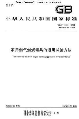 家用燃?xì)馊紵骶叩耐ㄓ迷囼?yàn)方法GB/T 16411-2023